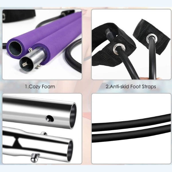 Лостът за пилатес дава възможност за упражнения за цялото тяло, насочени към ръцете, краката и сърцевината. Изпълнявайте клекове, разтягания и движения в горната част на тялото у дома, без да се нуждаете от големи машини или тежести.